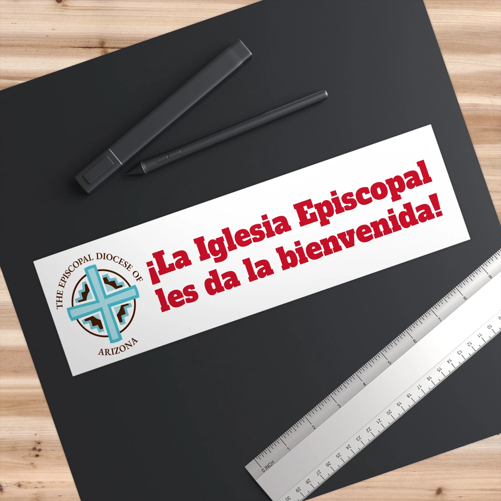 La Iglesia Episcopal les da la bienvenida! Bumper Sticker — Spanish Welcome Sticker (Episcopal Diocese of Arizona)